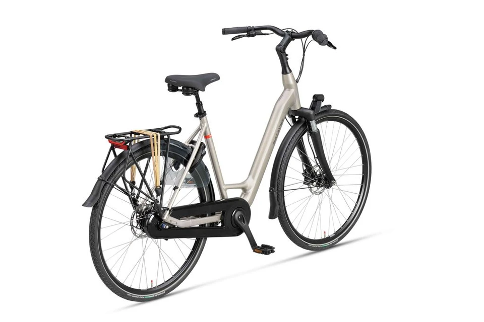 Complete en comfortabele stadsfiets voorzien van verende voorvork én zadelpen.