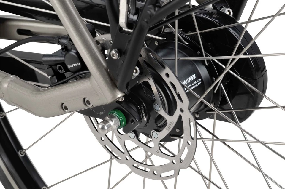 Veiligheid staat bij de Finez centraal. De fiets is uitgerust met slimme ‘Vizi’ verlichting die werkt op een naafdynamo; deze past de lichtsterkte automatisch aan op basis van het omgevingslicht en heeft een dagrijstand voor extra zichtbaarheid. Met de 7 Shimano Nexus versnellingen vindt u altijd het juiste ritme en de krachtige hydraulische schijfremmen zorgen voor een korte remweg, zelfs bij regenachtig weer. De veelzijdige MIK-bagagedrager maakt het plaatje compleet: hiermee klikt u fietsaccessoires zoals tassen of manden eenvoudig en stevig vast.
