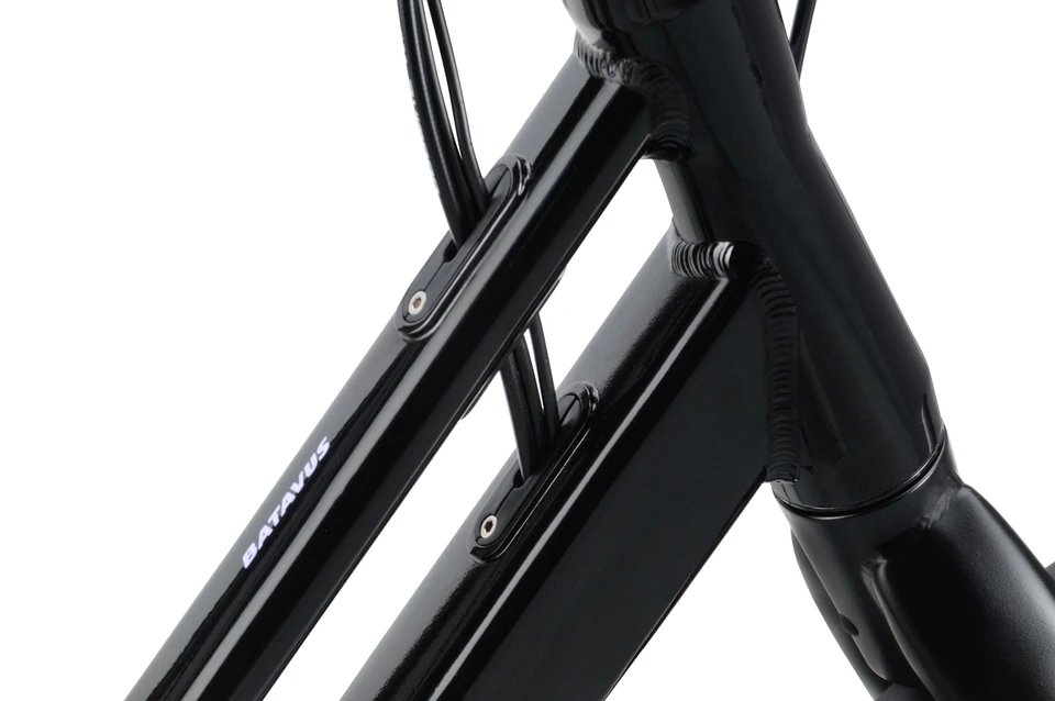 Kabels zijn netjes weggewerkt in het frame, wat beschadigingen in fietsenstallingen voorkomt.