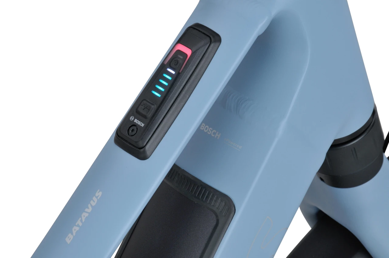 De Bosch Performance SX middenmotor levert krachtige maar stille ondersteuning en voelt direct en natuurlijk aan. Met een koppel van 50 Nm accelereer je soepel weg bij stoplichten en fiets je zonder moeite door heuvelachtig terrein. De motor is gekoppeld aan een compacte 400 Wh accu, goed voor een actieradius van circa 40 tot 75 kilometer, ideaal voor dagelijkse ritten in en rondom de stad.