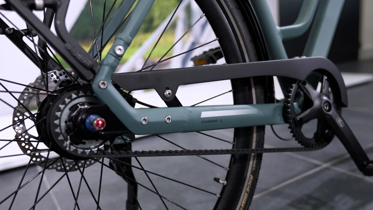 Onderhoudsarme riemaandrijving (belt drive): stiller, schoner en duurzamer dan een ketting.