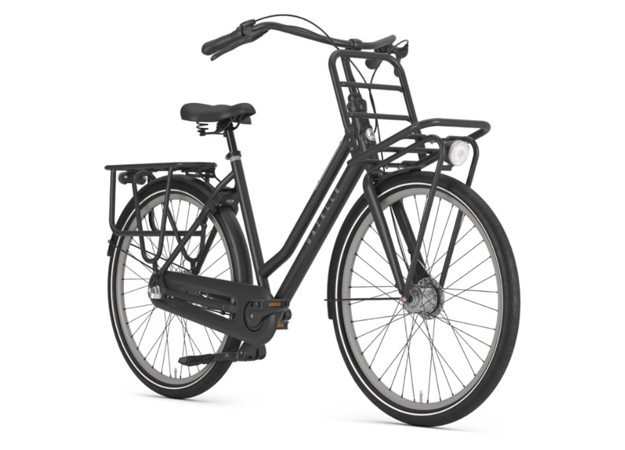 De Gazelle HeavyDutyNL T3 2024 is de ultieme transportfiets voor wie functionaliteit wil combineren met een stoer design. Of u nu zware boodschappentassen, een volle schooltas of sportspullen moet vervoeren, met de robuuste voor- en achterdrager neemt u alles moeiteloos mee. Ondanks de stevige bouw fietst dit model verrassend licht en comfortabel, mede dankzij de extra brede banden die zorgen voor stabiliteit en demping op elk wegdek.