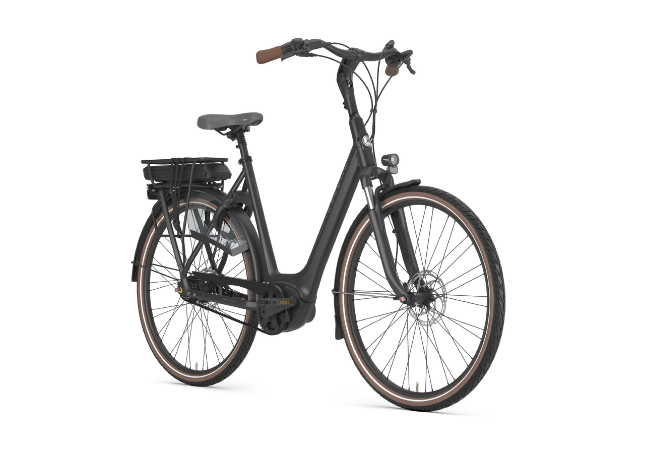 Comfortabele e-bike met verende voorvork en zadelpen