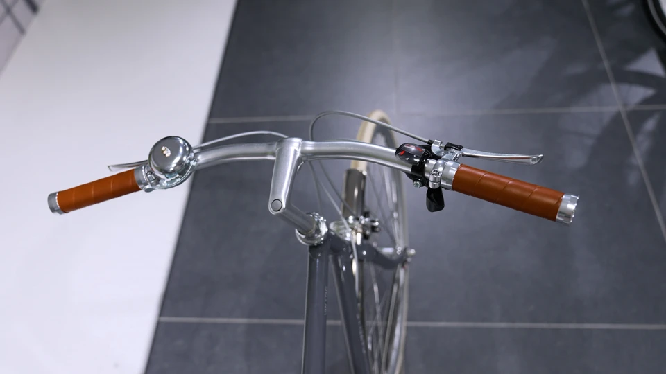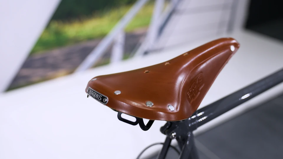 Hoogwaardige afwerking met een comfortabel lederen Brooks-zadel en handvatten.