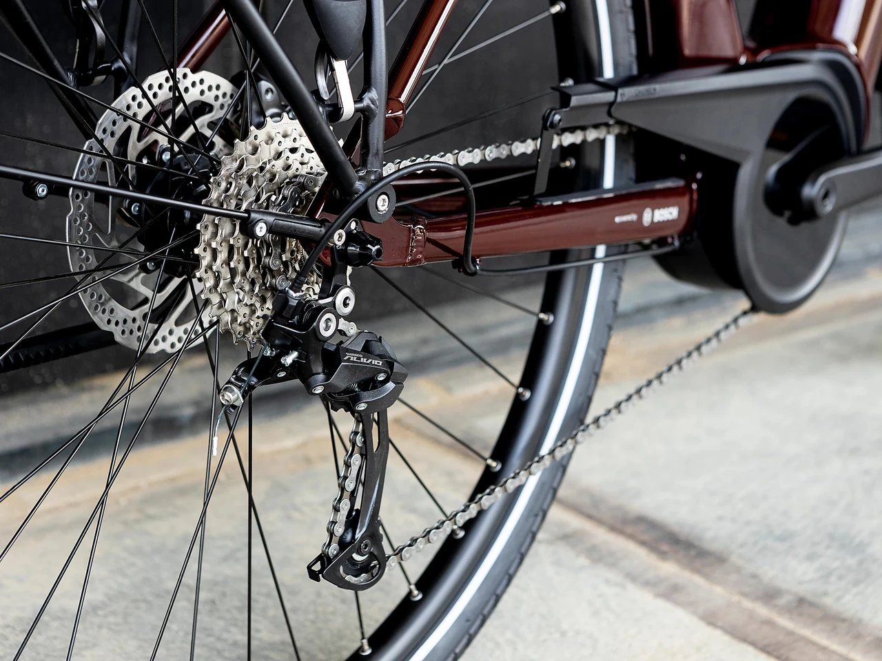 Met 9 versnellingen heb je altijd het juiste verzet voor een ontspannen en efficiënte rit. Het robuuste frame en de doordachte afwerking maken deze e-bike niet alleen praktisch, maar ook prettig en betrouwbaar in dagelijks gebruik.